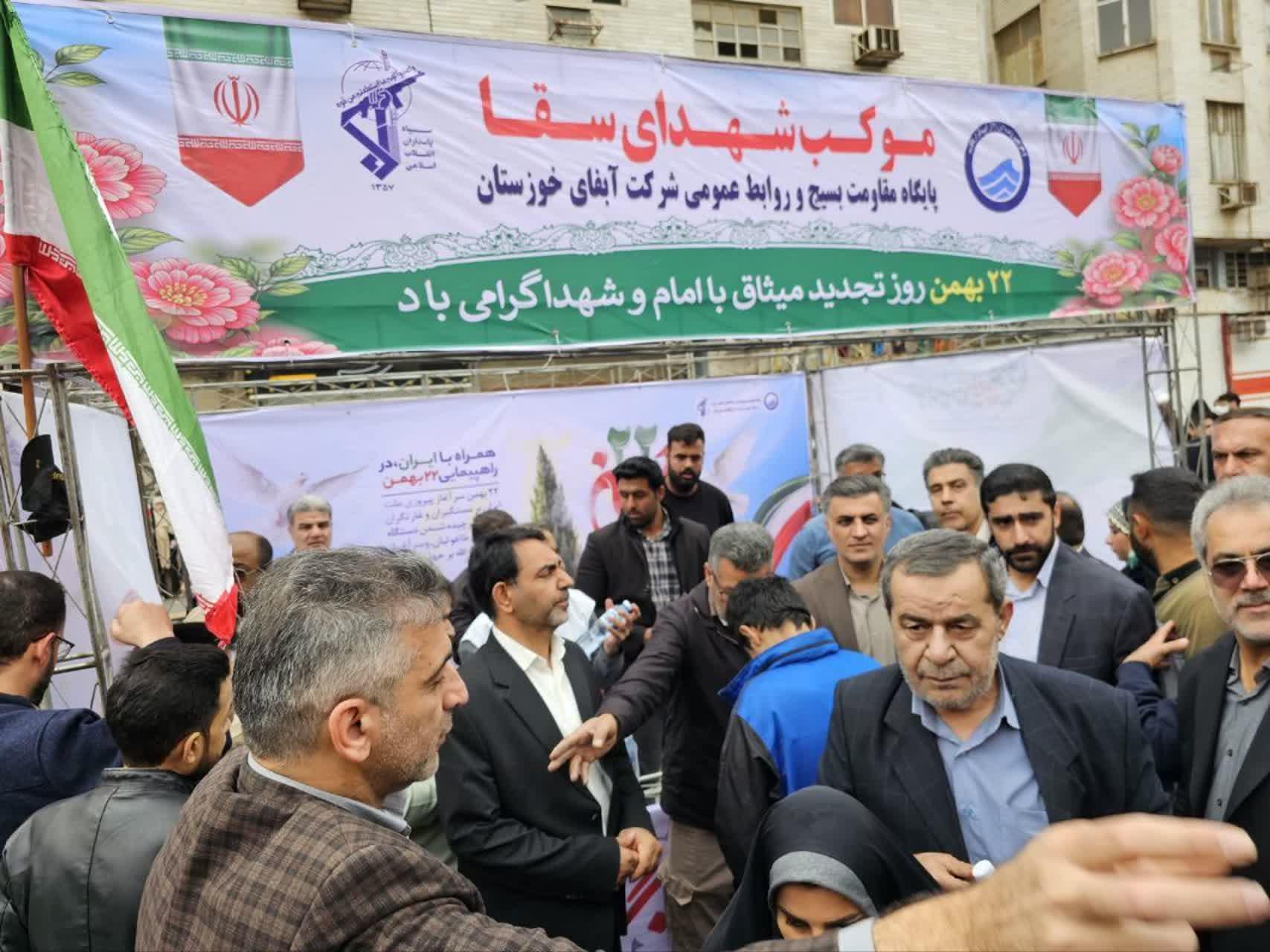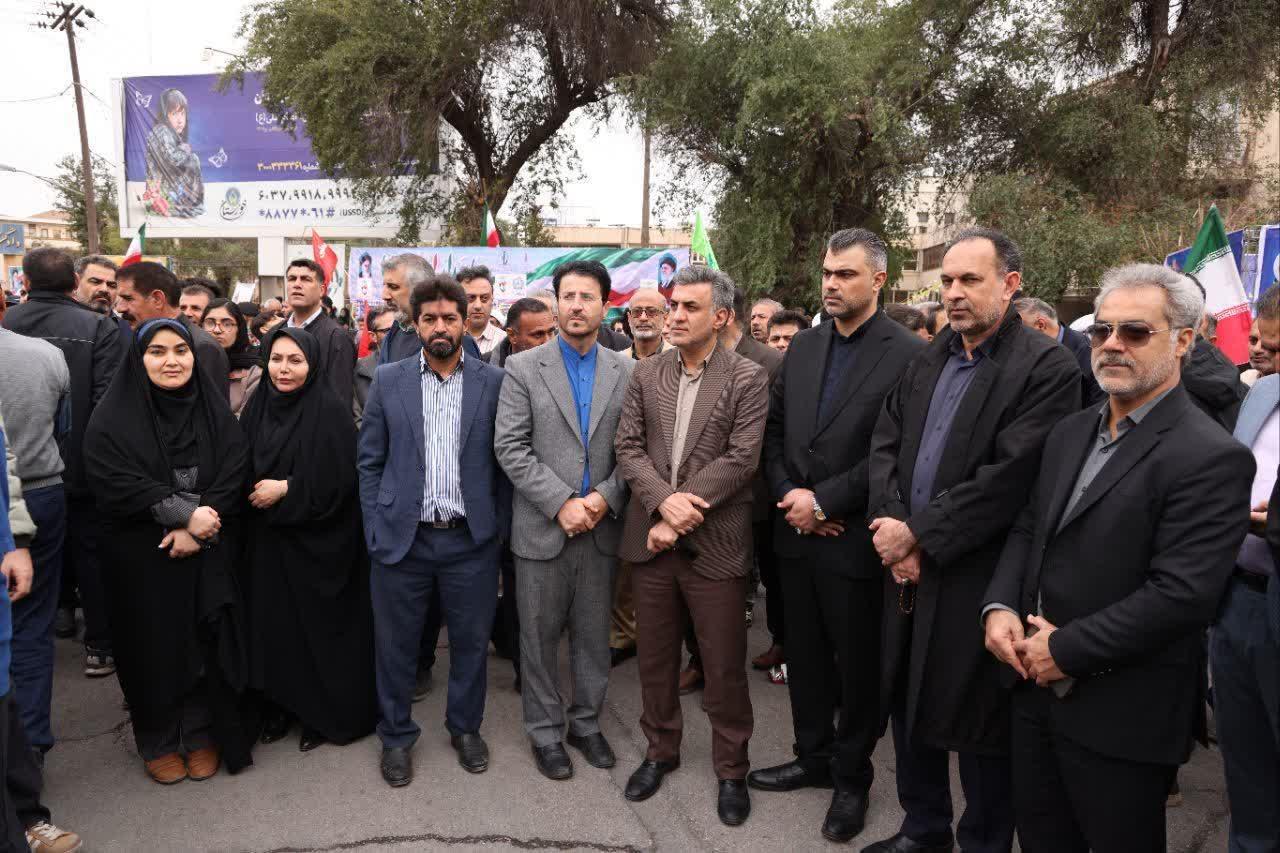 حضور دکتر افشین حاتمی سرپرست شرکت آب و فاضلاب خوزستان به همراه معاونین؛ مدیران و کارکنان شرکت در راهپیمایی یوم الله ۲۲ بهمن
